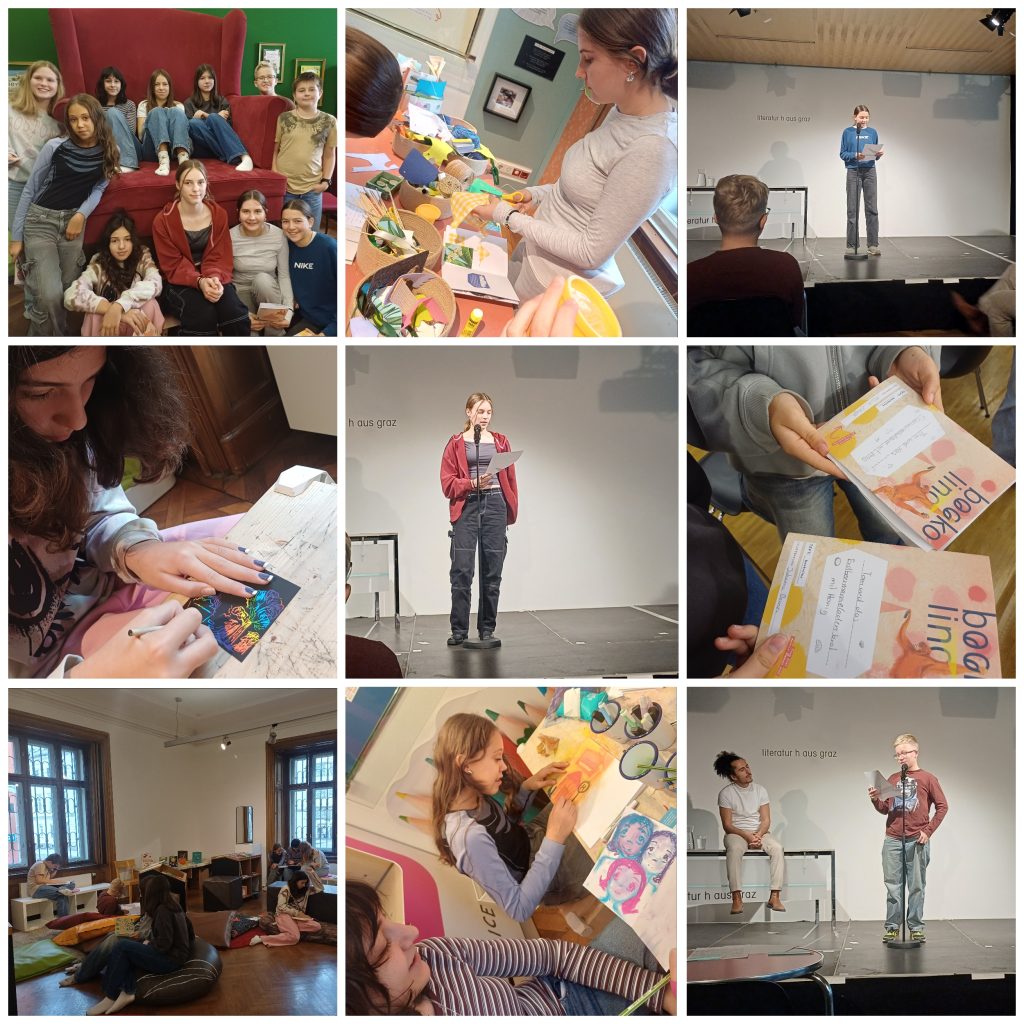 Am Donnerstag, den 13. November, haben elf Schüler:innen der zweiten bis vierten Klassen unsere Schulbibliothek verlassen und stattdessen das Literatur(h)aus Graz unsicher gemacht, um das bookolino, das Literaturfestival für junges Publikum, zu erobern. Bei einer von FRida&freD kuratierten Mitmach-Buch-Ausstellung zum Thema Illustrationen konnten wir unsere eigenen Bücher kreieren und in den neuesten Publikationen der Kinder- und Jugendliteratur schmökern.