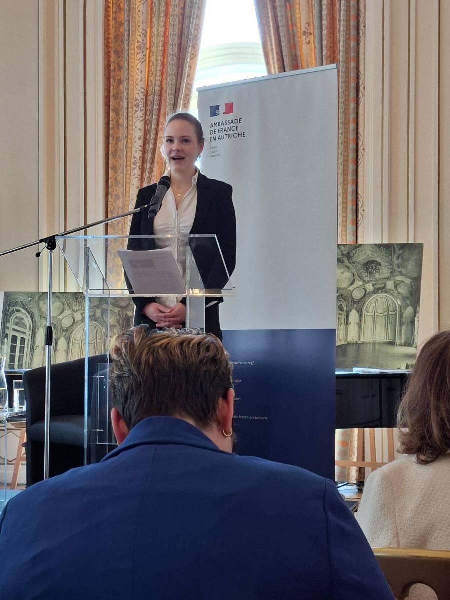 Am 17. April wurde es in der französischen Botschaft in Wien sprachlich spannend: Der Bundeswettbewerb Sprachmania – ganz im Zeichen der französischen Sprache – brachte die besten Nachwuchstalente aus ganz Österreich zusammen. Mit dabei die steirische Landessiegerin aus dem Carneri, die sich mit ihrem Können für diesen besonderen Wettbewerb qualifizieren konnte.