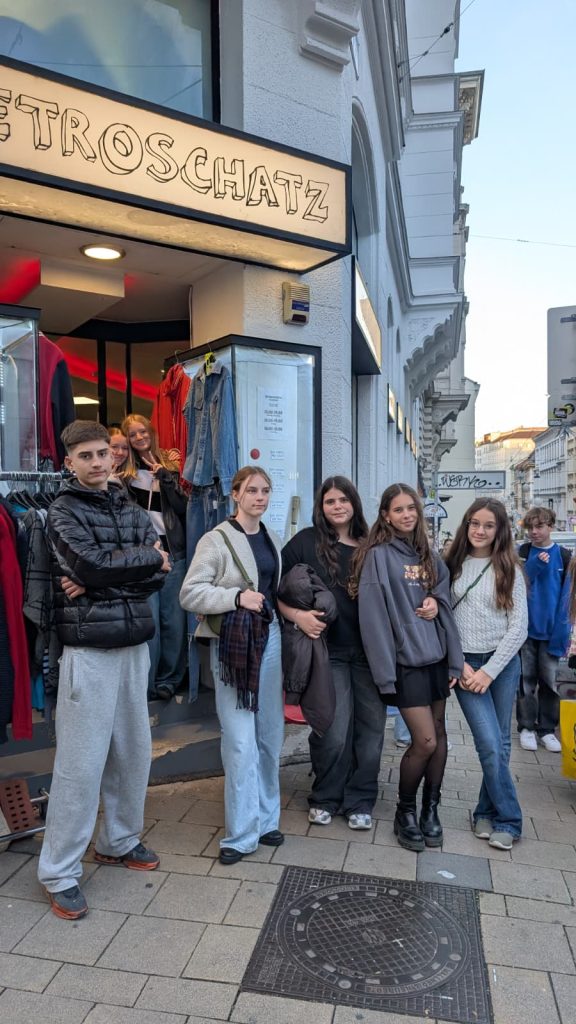 Genau so ist es am Montag, dem 3. 11. 2025, passiert. Nach einer entspannten Zug- und Straßenbahnfahrt erreichten wir das Jugendgästehaus Brigittenau. Nachdem alle ihre Zimmer bezogen hatten und ausreichend mittaggegessen hatten, machten wir uns auf den Weg zu unserer Stadtführung. Anschließend begaben wir uns in Kleingruppen selbständig zum Kunsthaus-Wien, wo wir an einem Ökologieworkshop teilnahmen. Danach bewegten wir uns, mit einem kurzen Zwischenstopp beim Spar, zurück zum Stephansdom, wo wir uns mit dem Lift direkt zur Pummerin begaben. Bei fast vollkommener Dunkelheit betrachteten wir die bunten Lichter Wiens, bevor wir den Rückweg antraten, um in der Jugendherberge den Tag entspannt ausklingen zu lassen.
